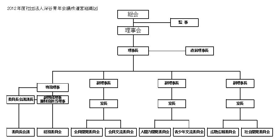 2012年度の深谷青年会議所の運営組織図をご覧になれます。