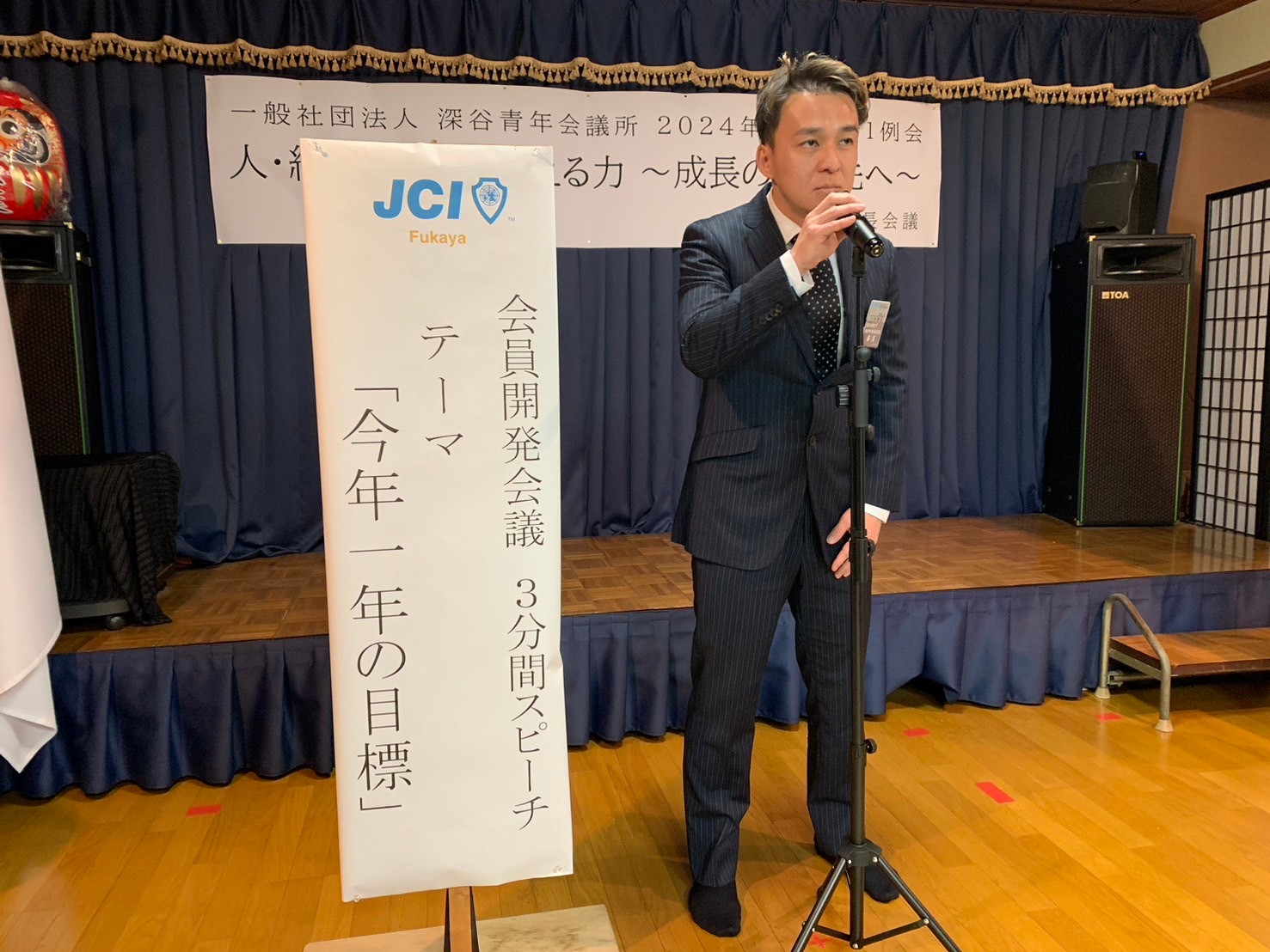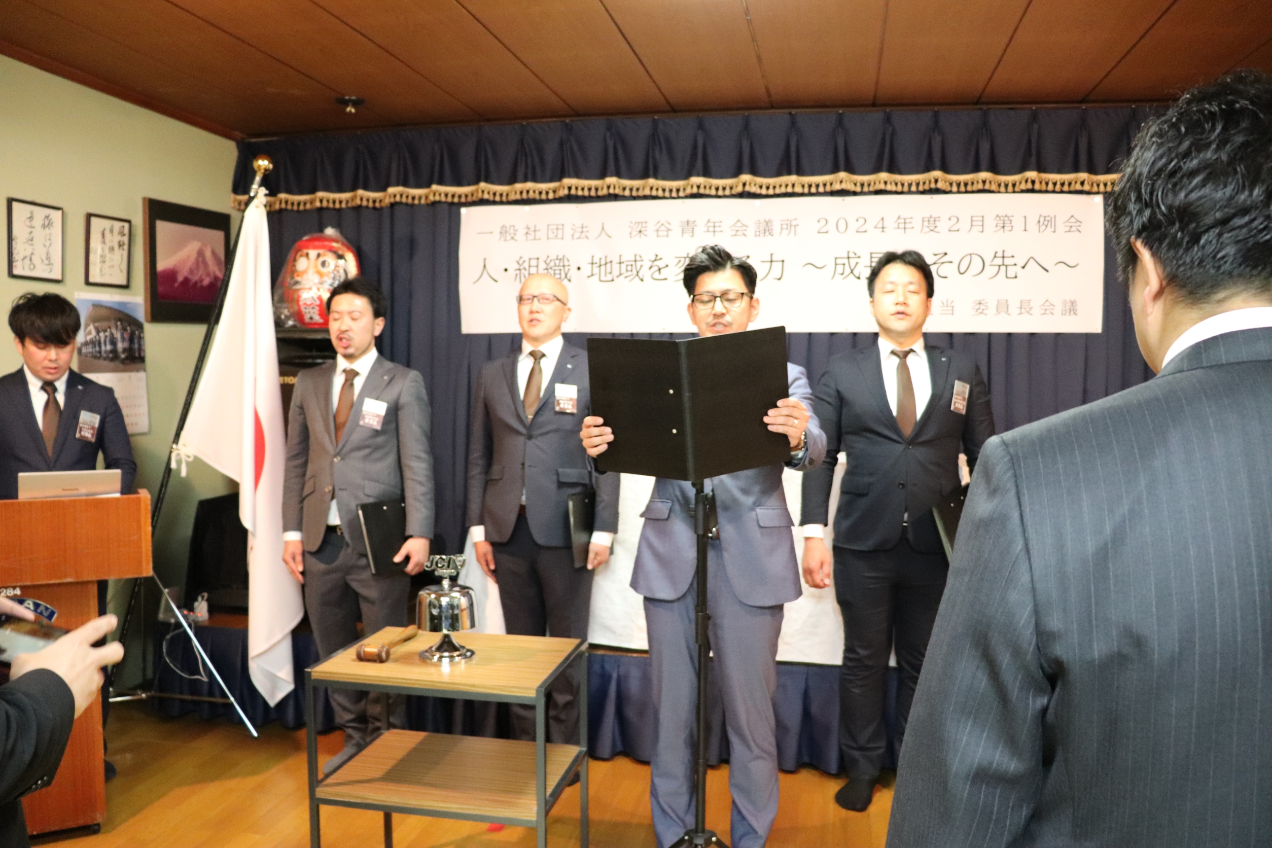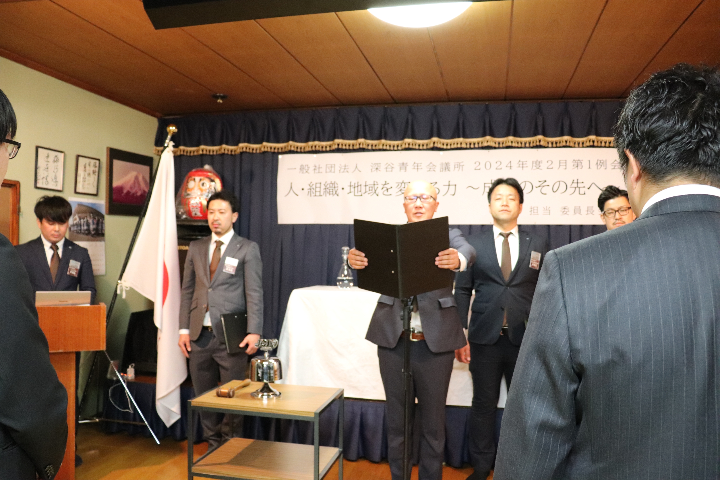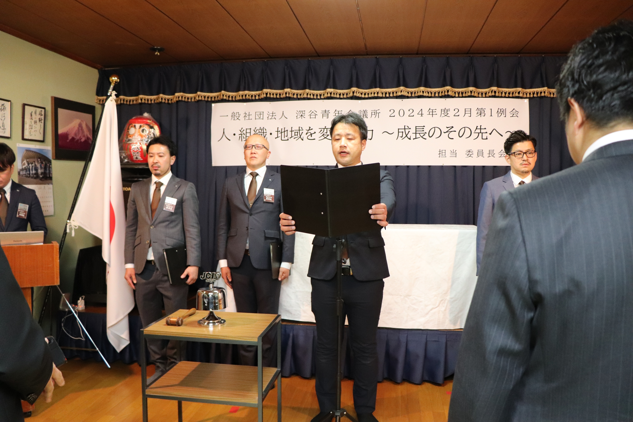 [メッセージ]割烹双葉にて2024年度02月第2例会「人・組織・地域を変える力~成長のその先へ~」を開催させていただきました。当日は公益社団法人日本青年会議所の直前会頭である麻生将豊君をお招きさせていただきました。麻生直前会頭に対し多くのメンバーやゲストの方々から質問を行いました。麻生直前会頭のこれまでの経験や知識を交えながらお話をしていただき、今後の運動につながる実りある時間になりました。ゲストの方々とも交流を図ることができ、一般社団法人深谷青年会議所がこれからも成長を続けていくことの必要性を改めて感じることができました。