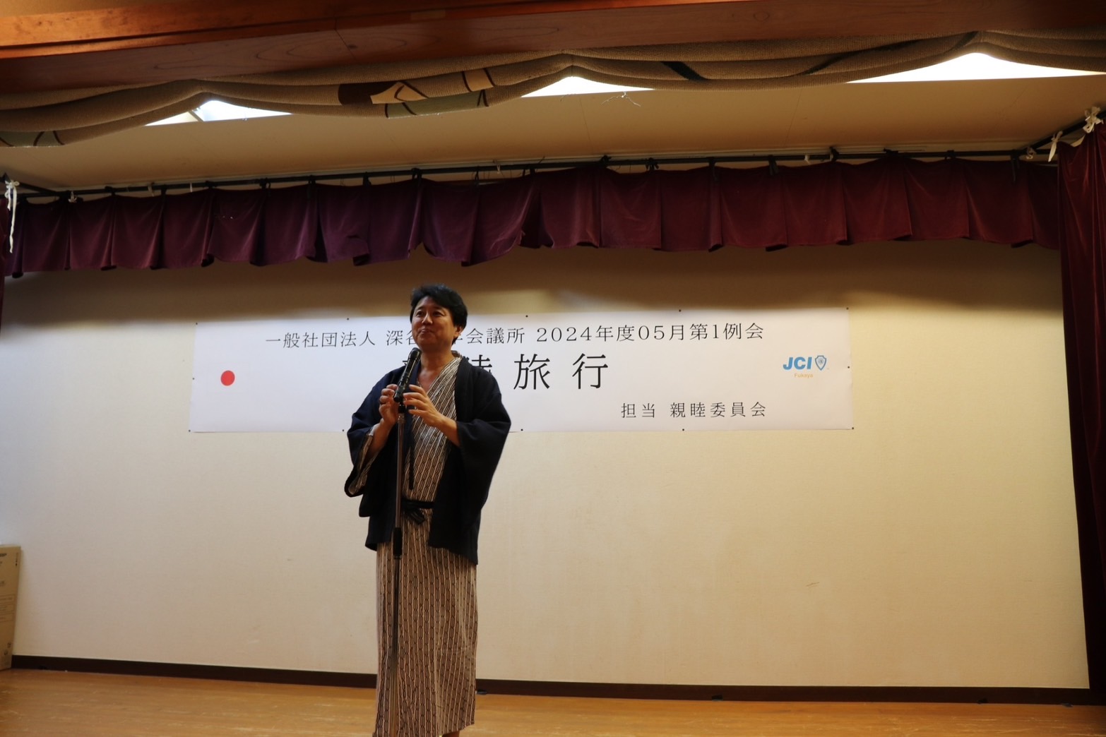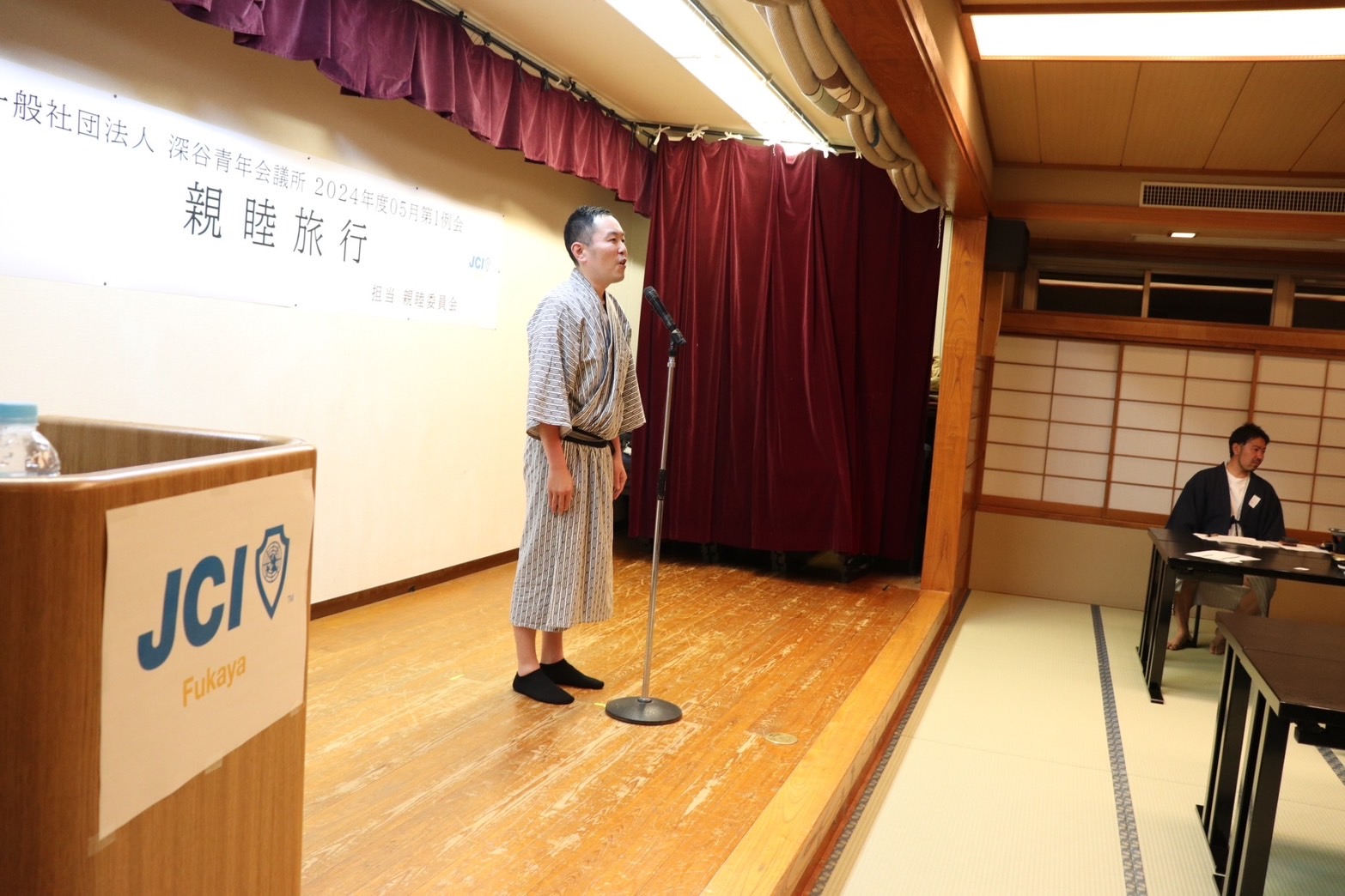 [メッセージ]親睦会委員会設営の下、秩父市皆野の地にて「親睦旅行」を開催させていただきました。実施に至った背景は、現役メンバーがOB諸兄姉とのつながりをより強くするためです。魅力ある地域をつくるためには、現役メンバーと深谷で活躍しているOB諸兄姉とのつながりが必要であると考えています。当日は、第173回じゃがいもゴルフコンペも開催いたしました。一日を通して多くのOB諸兄姉の皆様にご協力いただき、貴重な経験談やアドバイス等を伺うことで、現役メンバーにとっては、刺激的な一日となりました。皆野の地までお越しいただいた多くのOB諸兄姉の皆様、本当にありがとうございます。