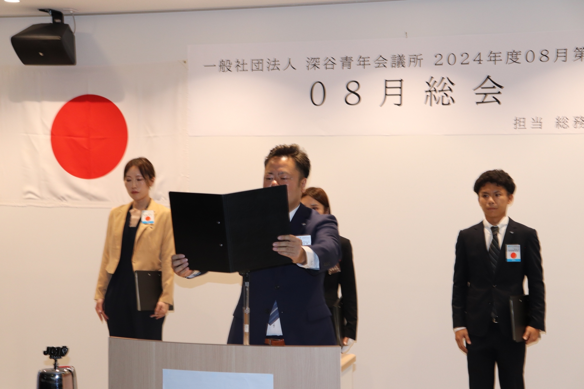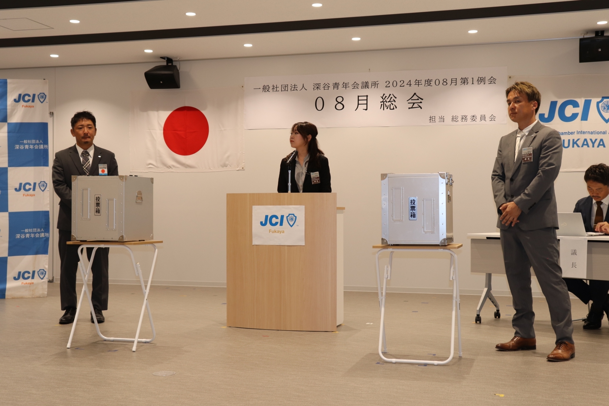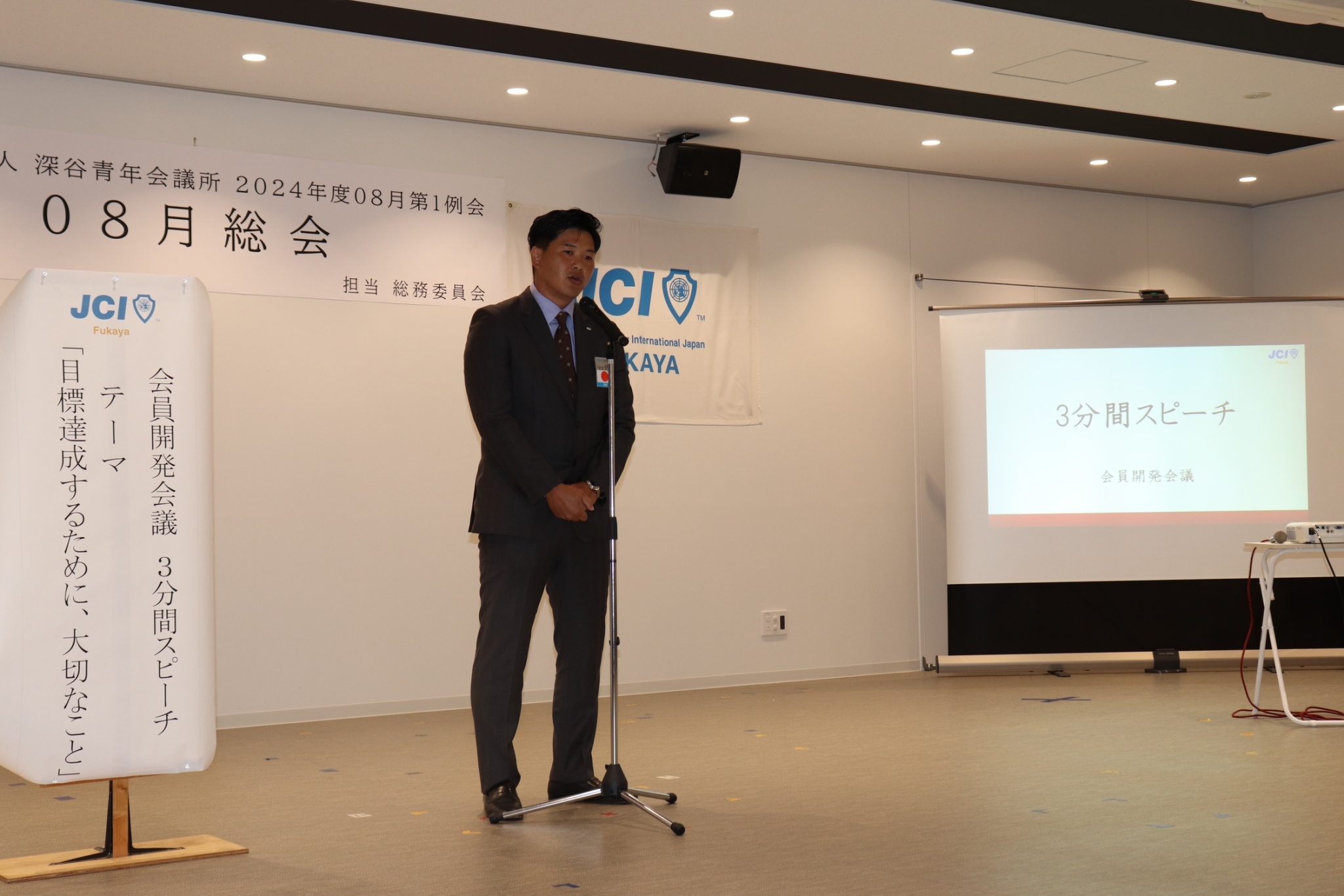 [メッセージ]一般社団法人深谷青年会議所08月総会が川本地区複合施設 ワモア川本で行われました。08月総会では2025年度理事長候補者立候補者の所信と推薦者2名のお言葉を聞きメンバー全員で2025年度理事長候補者立候補者の投票を行い、2025年度理事長候補者に小内大河君が正式に信任されました。役員選任管理員会委員長の飛田まどか君のもと、無事に開票作業や進行もスムーズに行い、時間にロスなどもなく08月総会を進行することもできました。その他にも2024年度本会計第1次補正予算書、新入会員承認式、副理事長予定者の指名、監事予定者の選任、2025年度理事メンバーの選出投票、専務理事予定者、財務担当理事予定者の指名や直前理事長予定者の信任等、2024年度後半に向けての財務構築を行い、2025年度へ向けてメンバー全員で決めることができました。