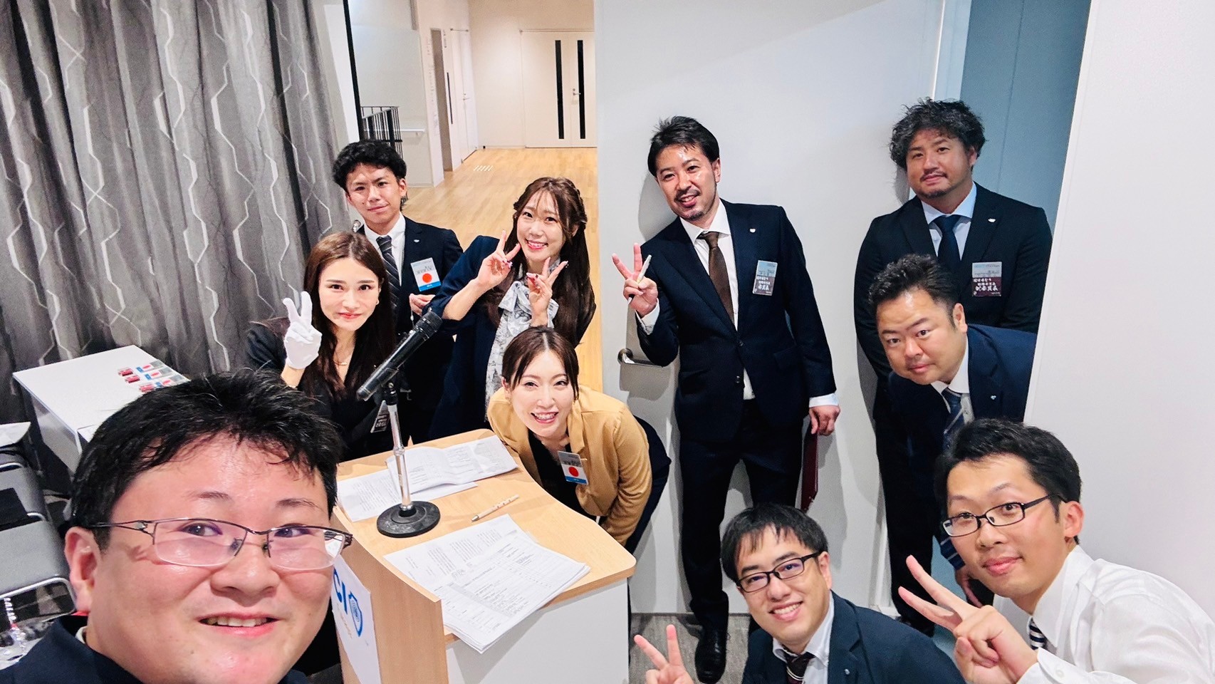 久保田理事長を中心にメンバーで円陣を組みました。