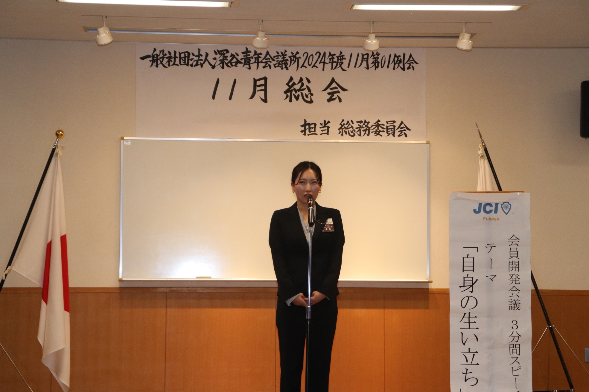 [メッセージ]11月総会では、2024年度第2次補正予算書と2025年度事業計画、本会計収支予算書の審議を行い、本年度の予算の状況と次年度の事業への取り組みに関してメンバーの皆様にご理解をいただき、2025年度に向けた運動指針を決めることができました。総会後は今年度のSNSに最も寄与した委員会の表彰を行い、今後の一般社団法人深谷青年会議所のSNSの発展につなげていきました。また委員会メンバーに対し、委員長や議長から表彰という形で感謝を伝えました。感謝のなかにはその人の人柄がよくわかる内容があり、自分自身のことだけではなく、メンバーの今年度の運動についても理解ができたと思います。今年度もあとわずかとなりましたが、引き続き一般社団法人深谷青年会議所はOne Teamで運動を展開してまいります。