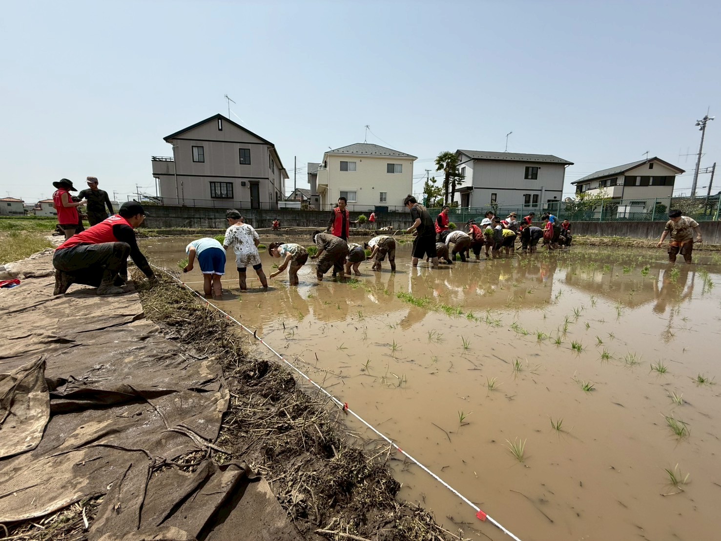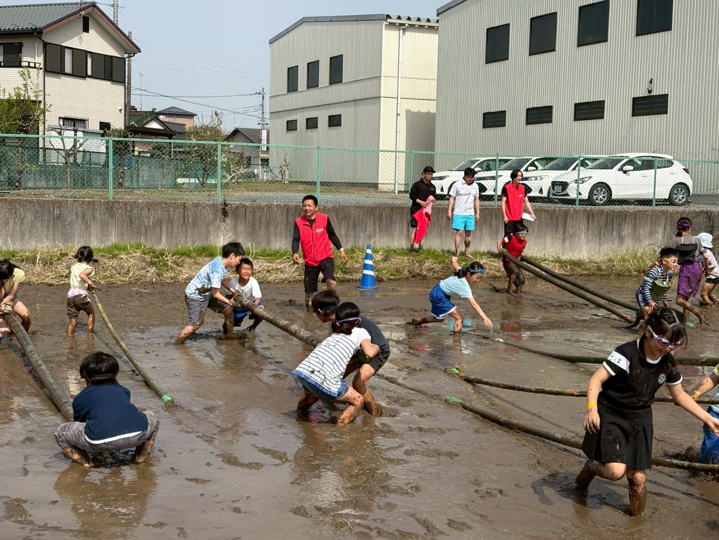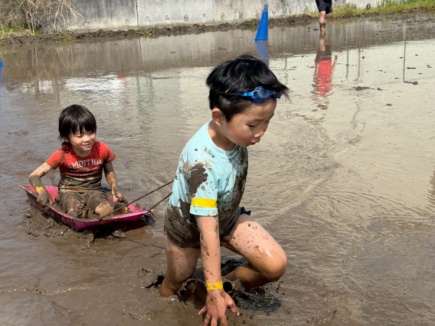 [メッセージ]青少年交流委員会が担当する例会「泥リンピック2025~深谷・寄居大会~」を寄居町内の田んぼで開催しました。深谷市・寄居町の小学生80人が参加し、田んぼの中での大運動会、そして田植えを行いました。初めて会った子ども同士でチーム競技に挑むことで、一人の時間では味わえない楽しさ、子どものコミュニケーション能力を養う機会を提供したいとの想いで企画した事業です。最初は田んぼの中に入ることに戸惑っていた子どもたちも、最後は全身泥だらけになりながら駆け回り、笑顔溢れる事業となりました。