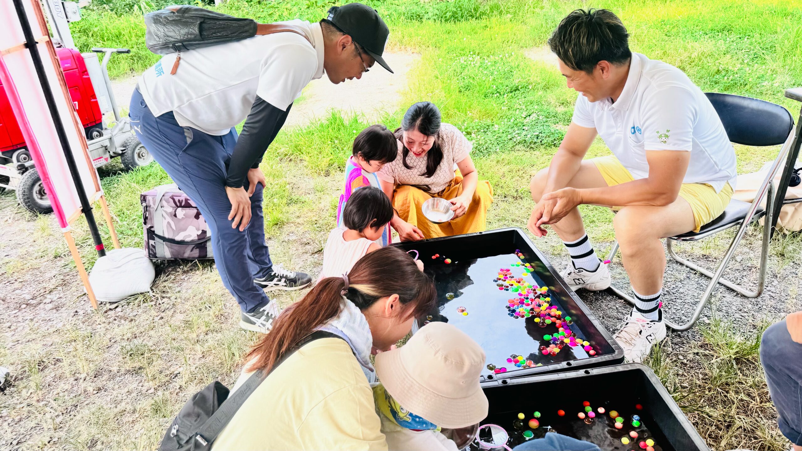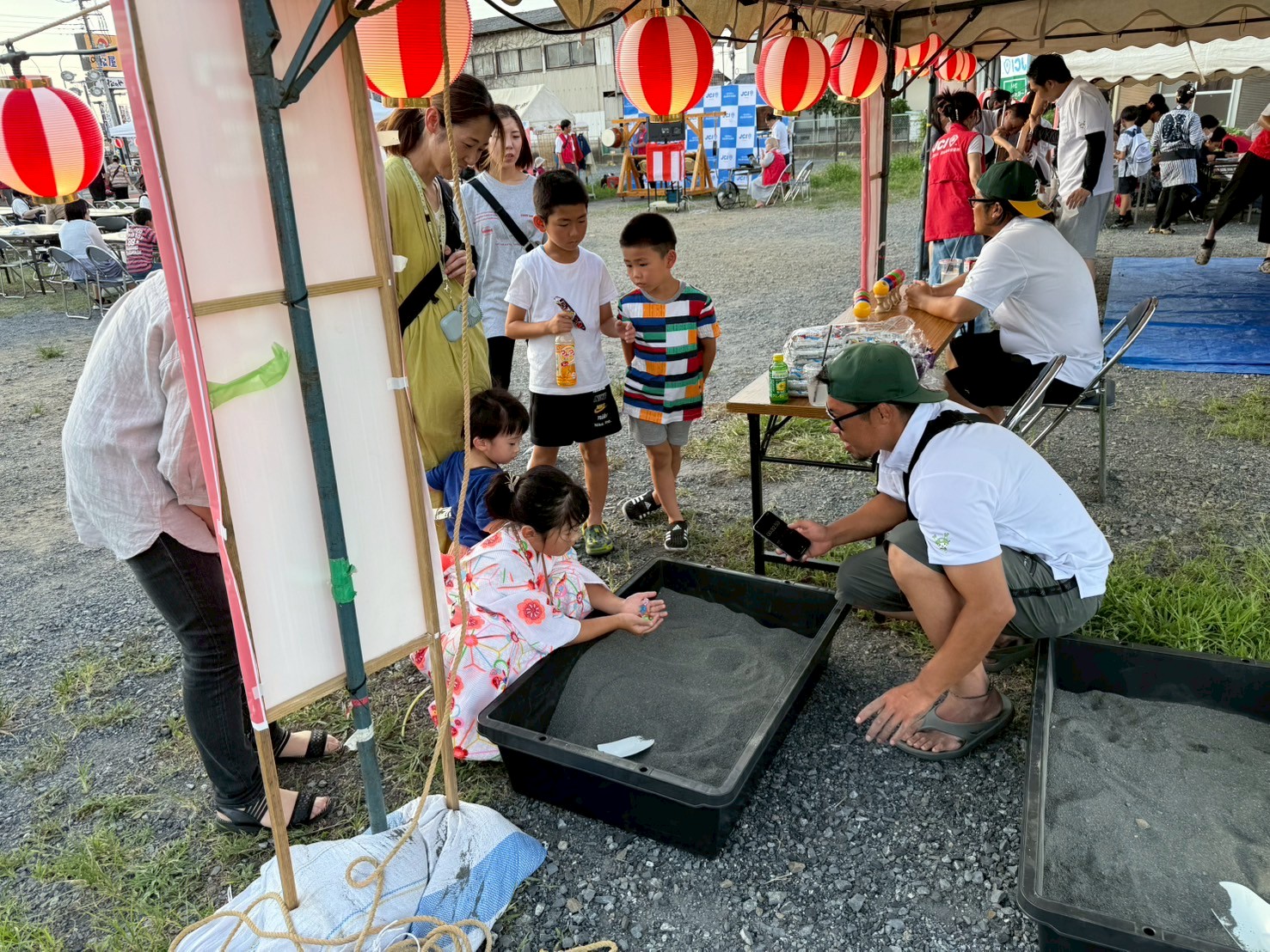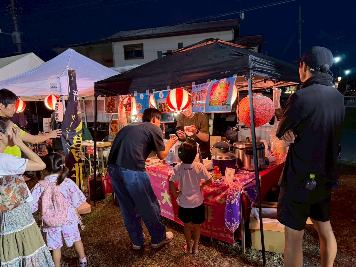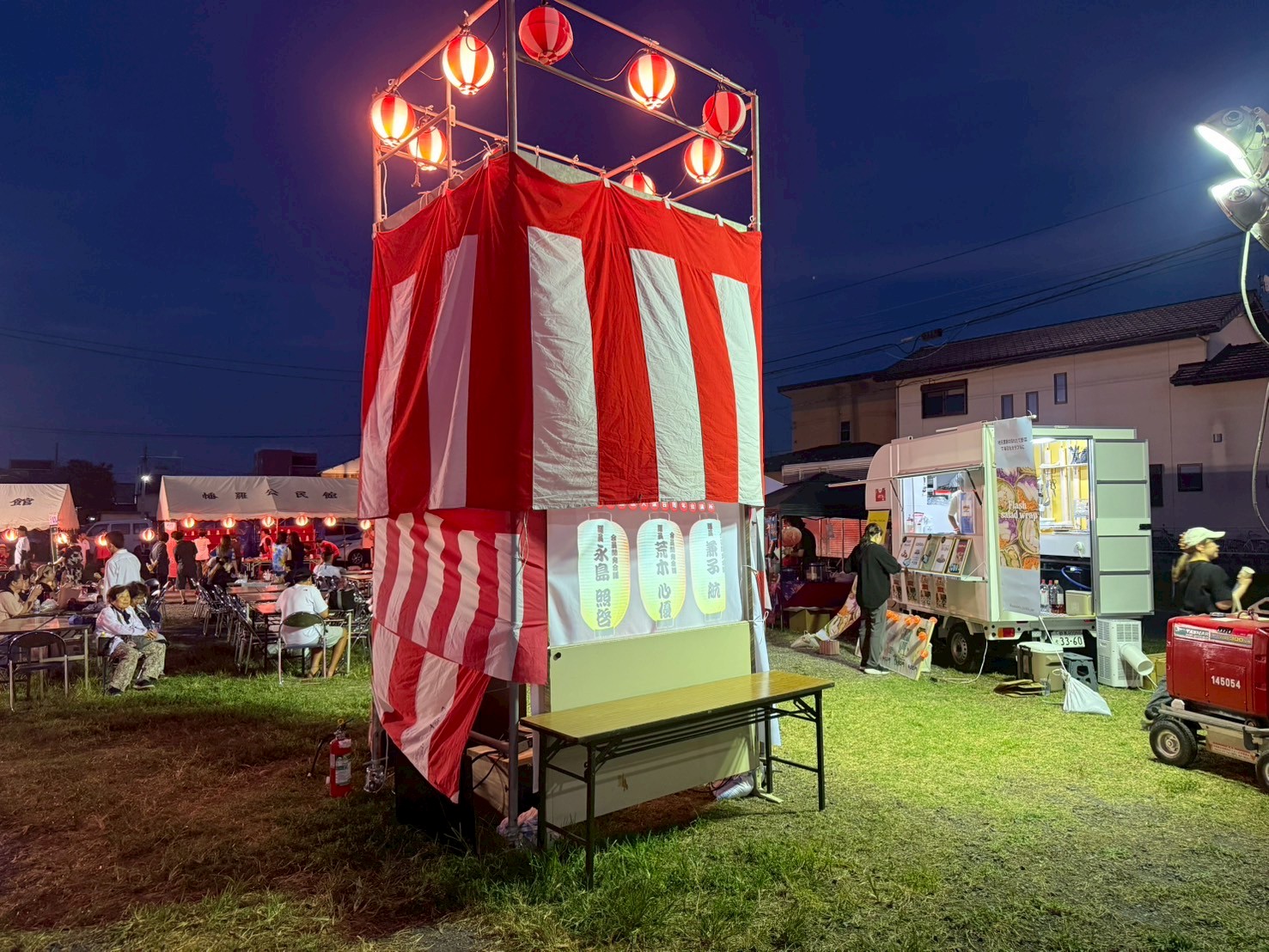 当日はシンボルとなる櫓を中心に、自治会の半纏を着用し太鼓を叩く設えでの写真・動画撮影スポット、深谷市の飲食店ブース、射的・スーパーボールすくい・型抜き・宝探し・五連けん玉の縁日の出しものを設えました。