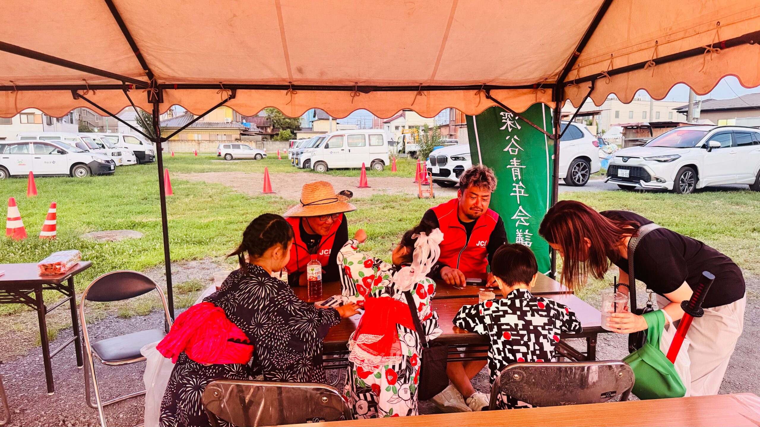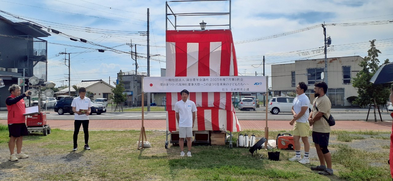 [メッセージ]2025年7月27(日)深谷市役所駐車場にて、「会員とこのまちの絆を紡ぐに関する事業」として、2025年度7月第1例会「深谷まつり・八坂神社夏季大祭~このまつりを未来の子どもたちへ~」を行いました。