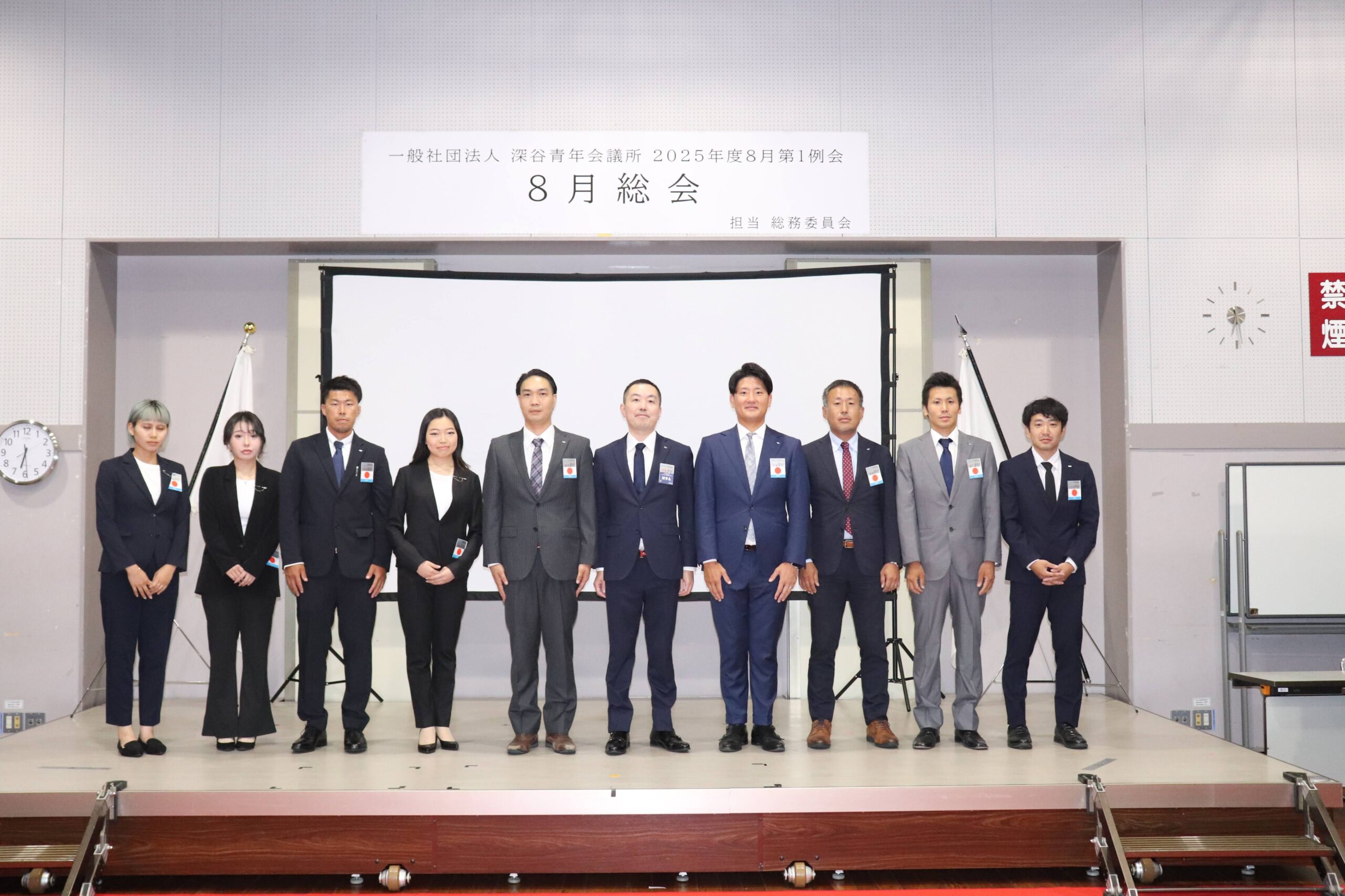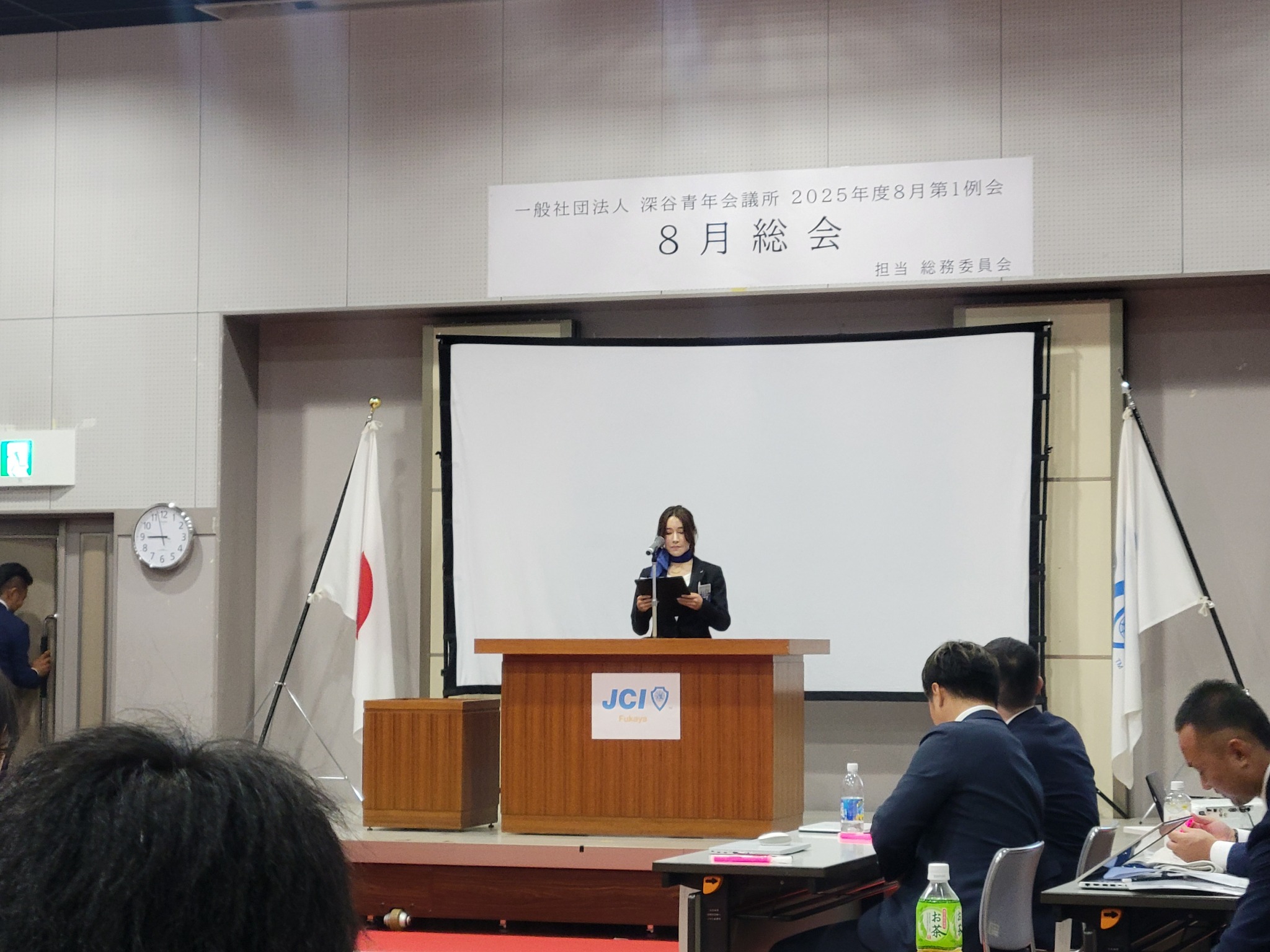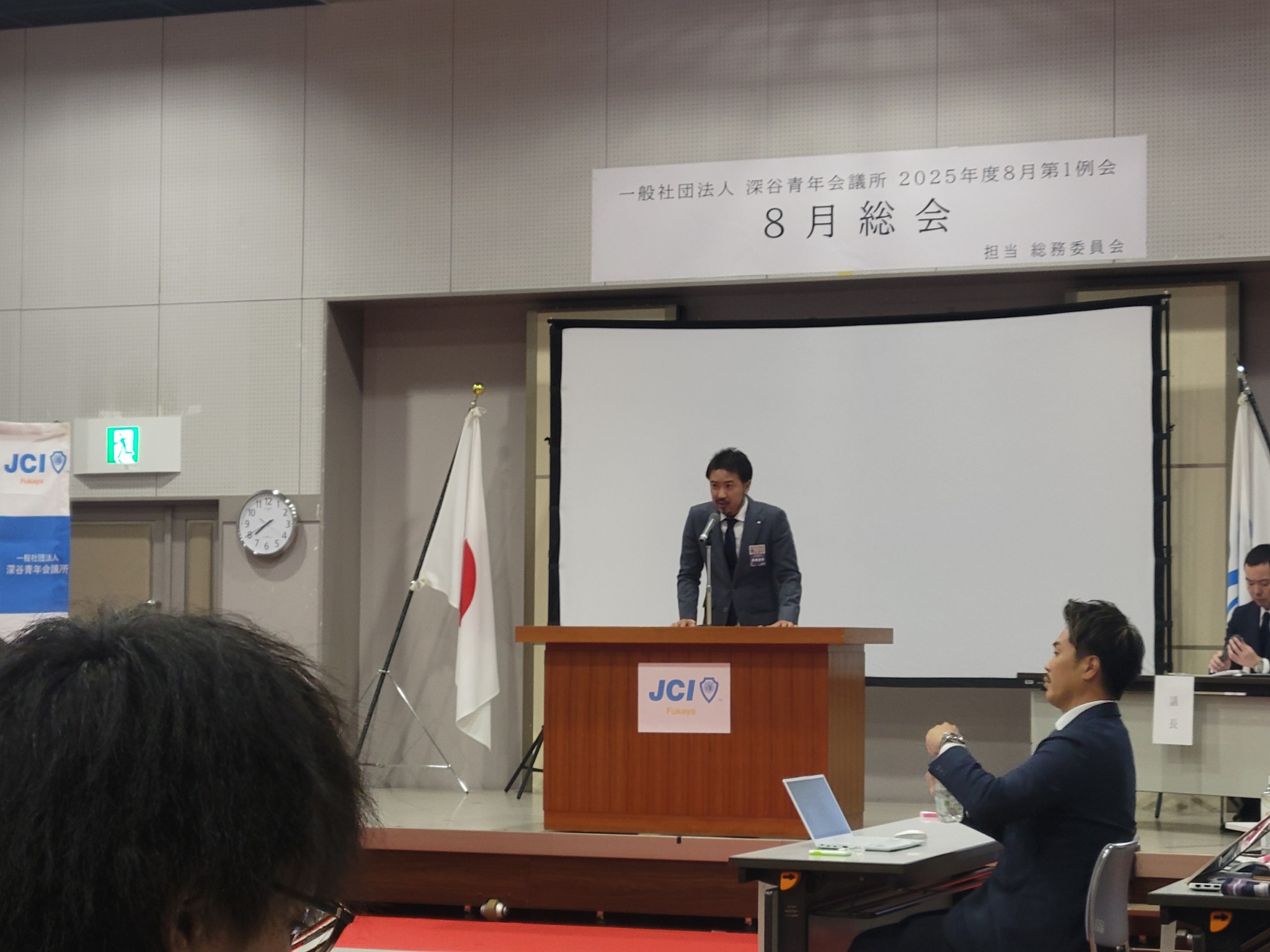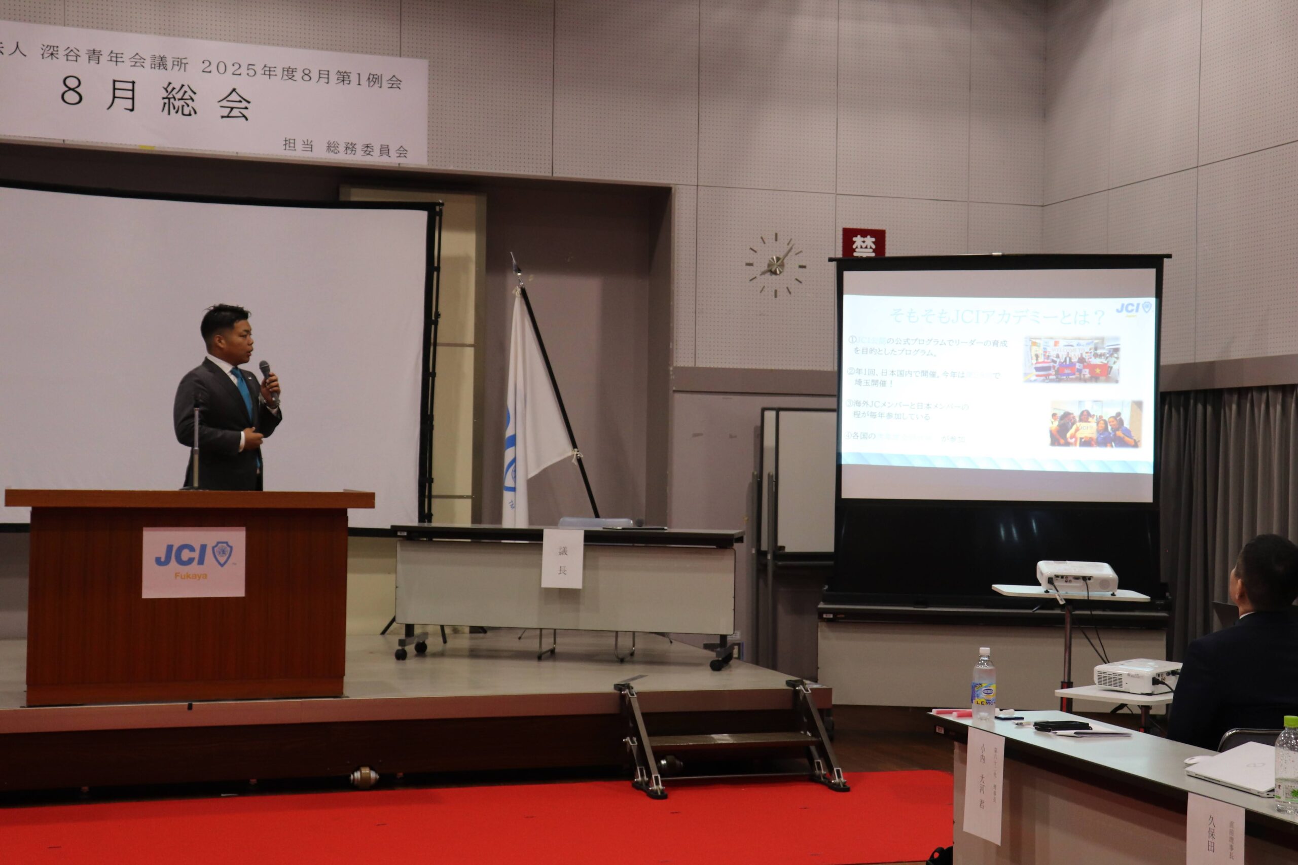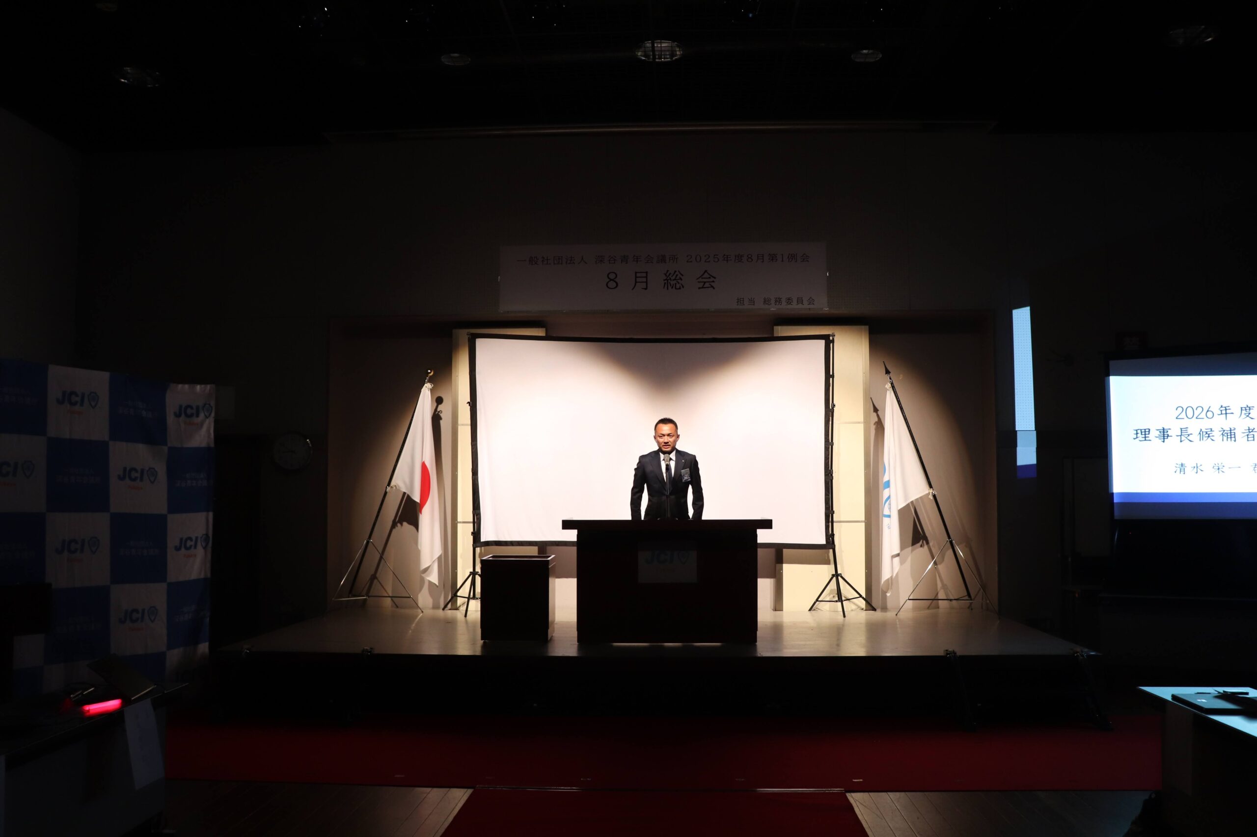 [メッセージ]2025年8月8日、深谷市花園文化会館アドニスにて「8月総会」を開催しました。本総会では、「2025年度第1次補正予算書」を審議し、これまでの予算が適正であったかを振り返るとともに、これからの活動をより良いものにするための再構築を行いました。また、2026年度の組織体制を決定し、理事長候補者の所信表明を通して、次年度の青年会議所運動に向けた想いを共有しました。審議では多くの質疑応答が交わされ、メンバー一人ひとりが当事者意識を持って真剣に議事に臨む姿が見られました。出向者報告でも活発な意見交換が行われ、学びと気づきのある総会となりました。
